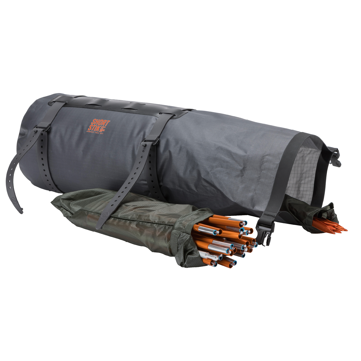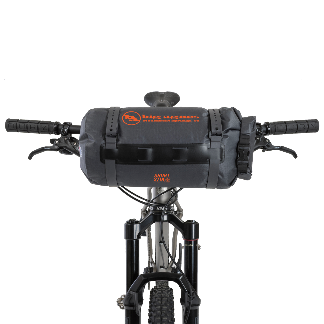 - 12" Shortstik-stangsett forkorter sekkstørrelsen slik at det passer til styret, rammen eller sykkelveskene.