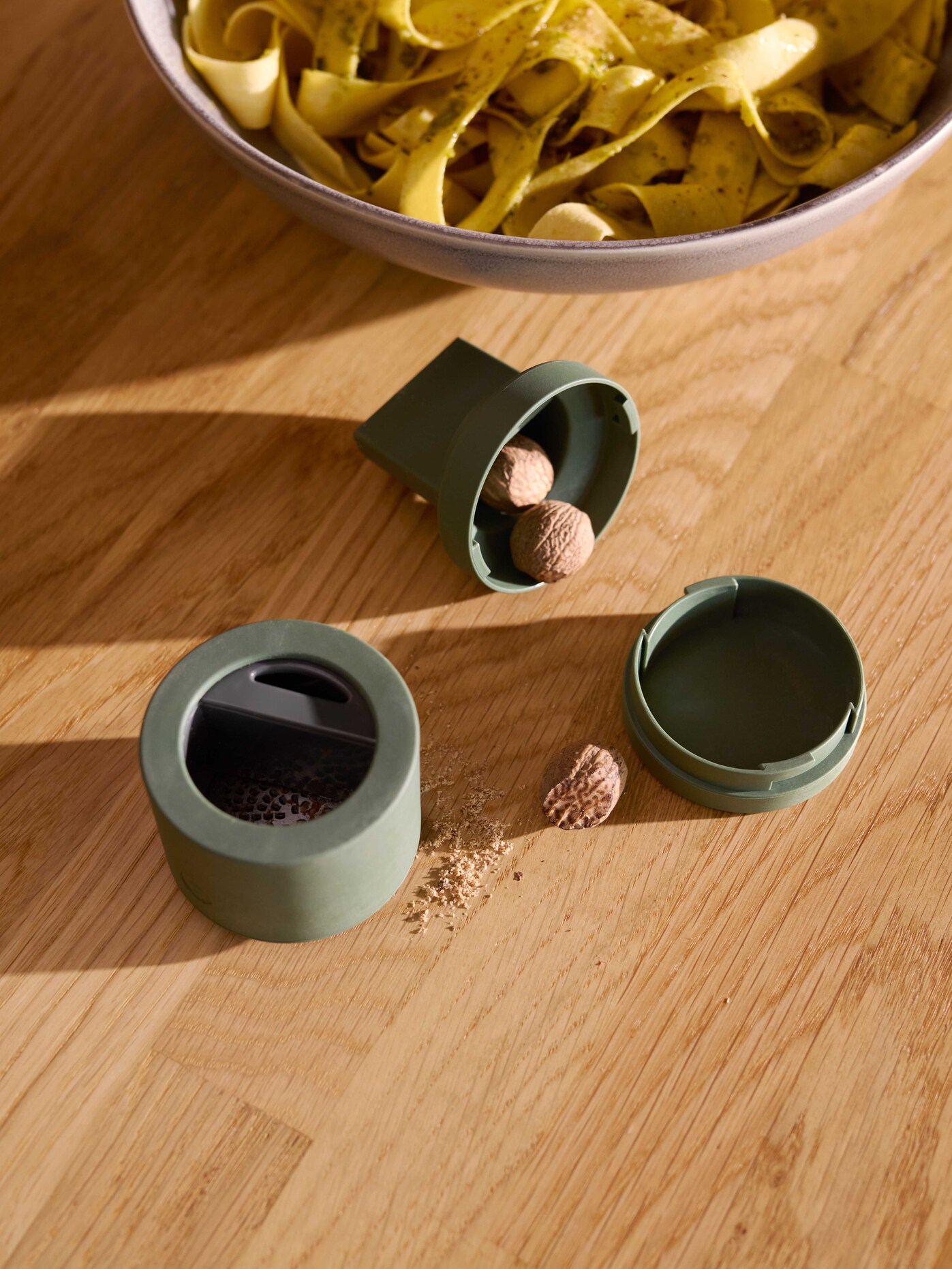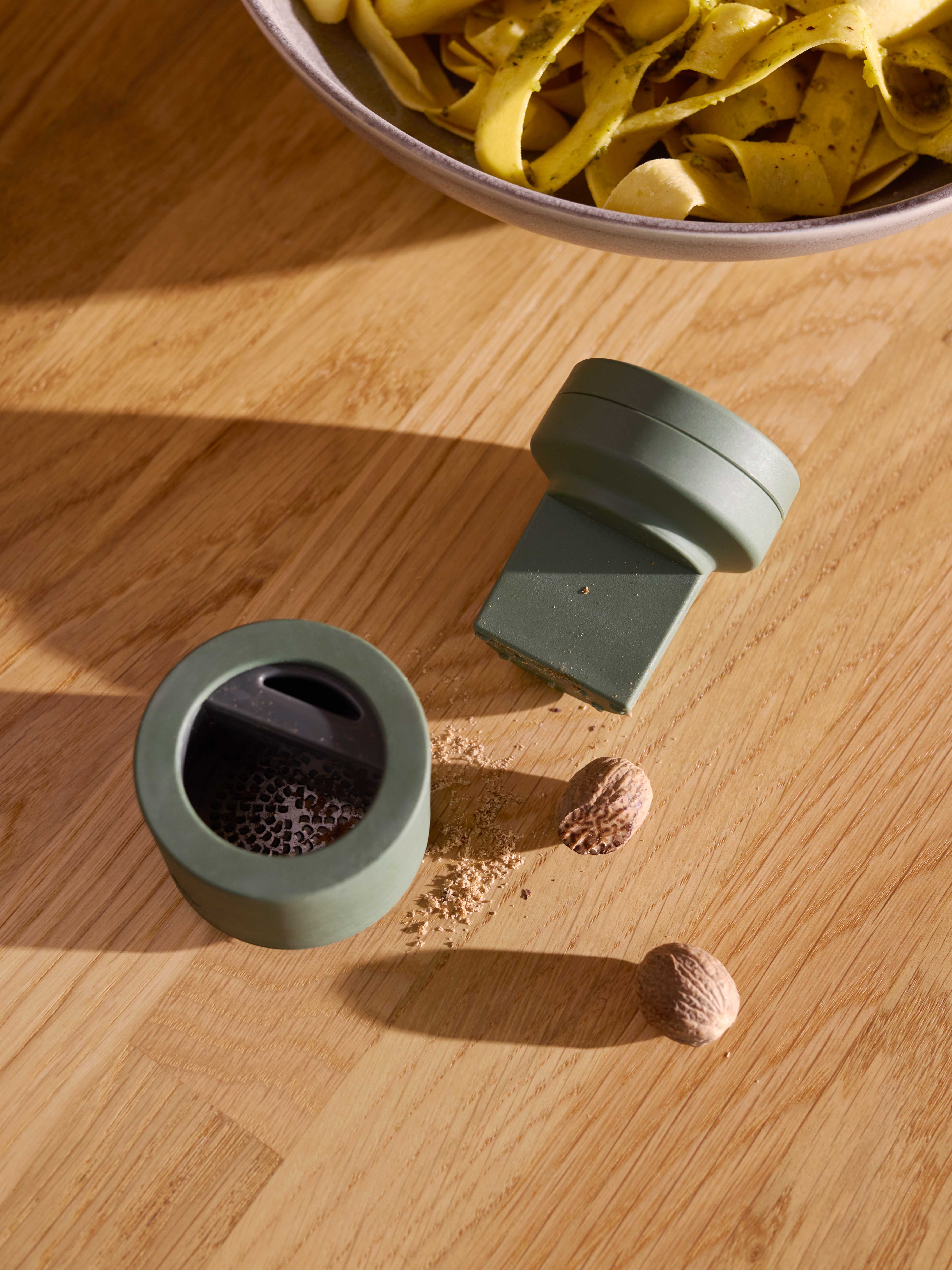 Billund muskatkvern gjør nyrivet muskat til en rask og trygg detalj i hverdagsmaten. Den er designet for både å rive og oppbevare hele muskatnøtter, uten at du trenger å bekymre deg for fingrene.
