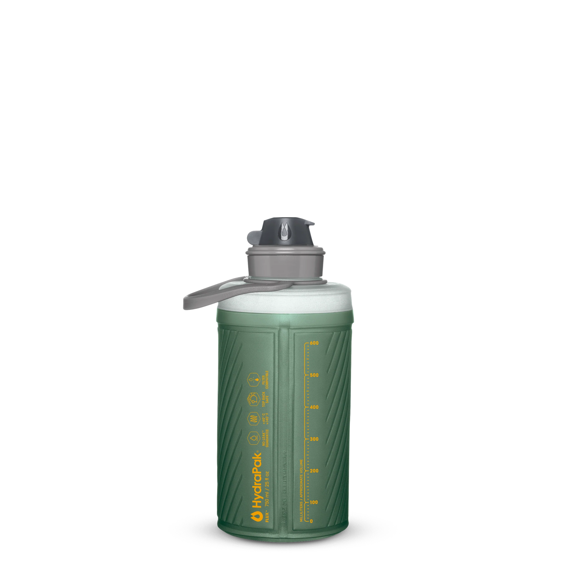 Hydrapak Flux 750 ML er formet som en hard flaske, men komprimeres som en myk flaske og reduserer vekten med 50 %. Flux står oppreist når du trenger det, men når du har drukket opp, kan flasken rulles ned til lommestørrelse, så du lett kan ta den med på turene dine.